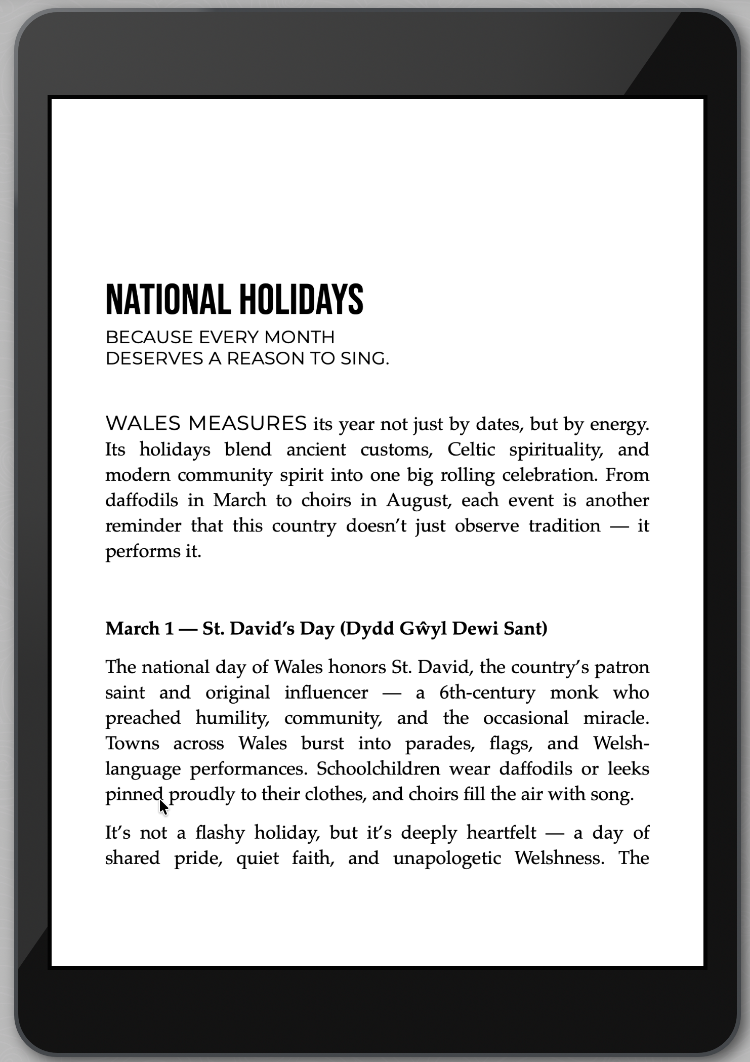 We begin with a Destination Primer: an easy-to-digest overview of Wales' regions, historical context, major holidays, and cultural insights — so you understand the why behind what you’re seeing.