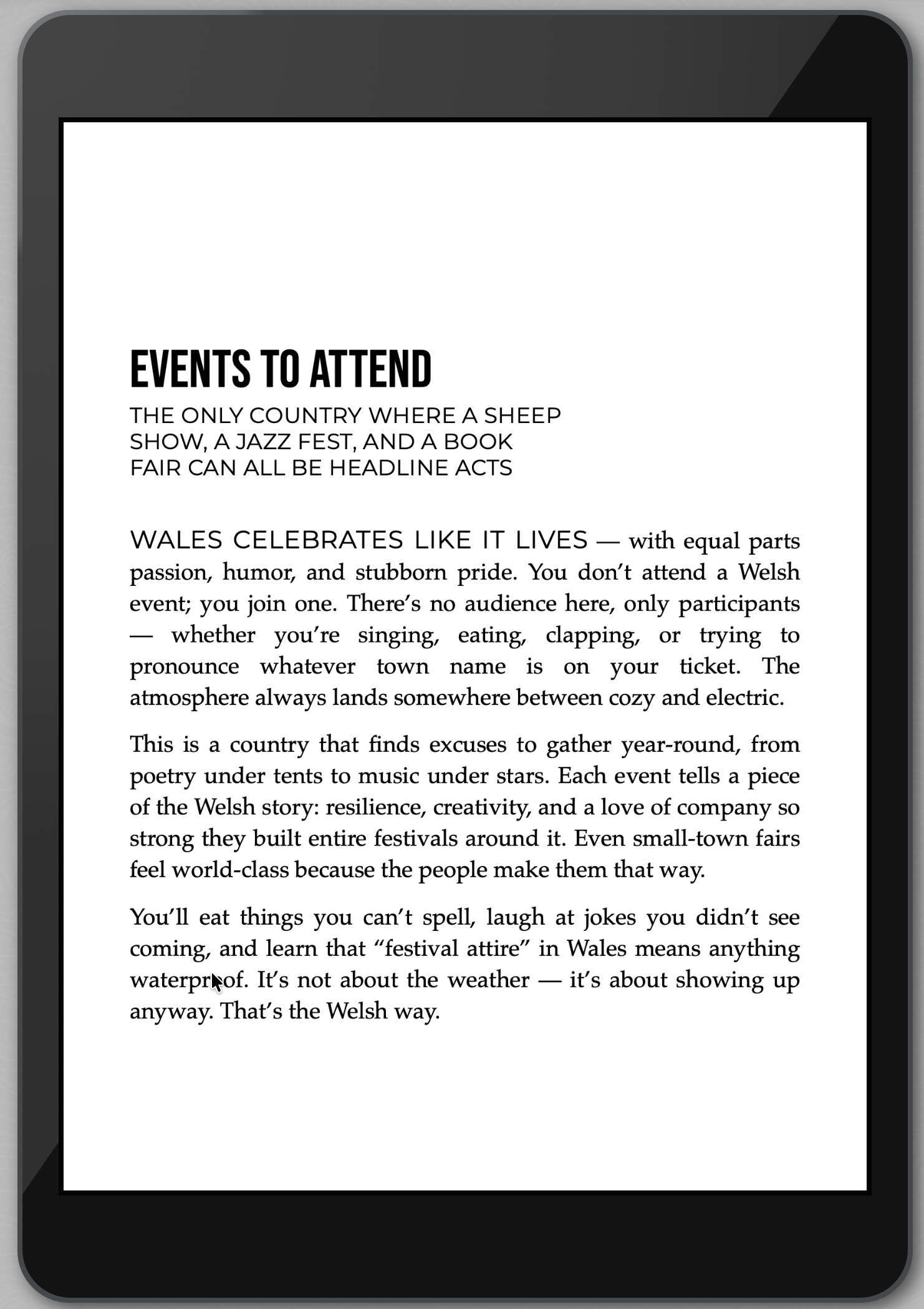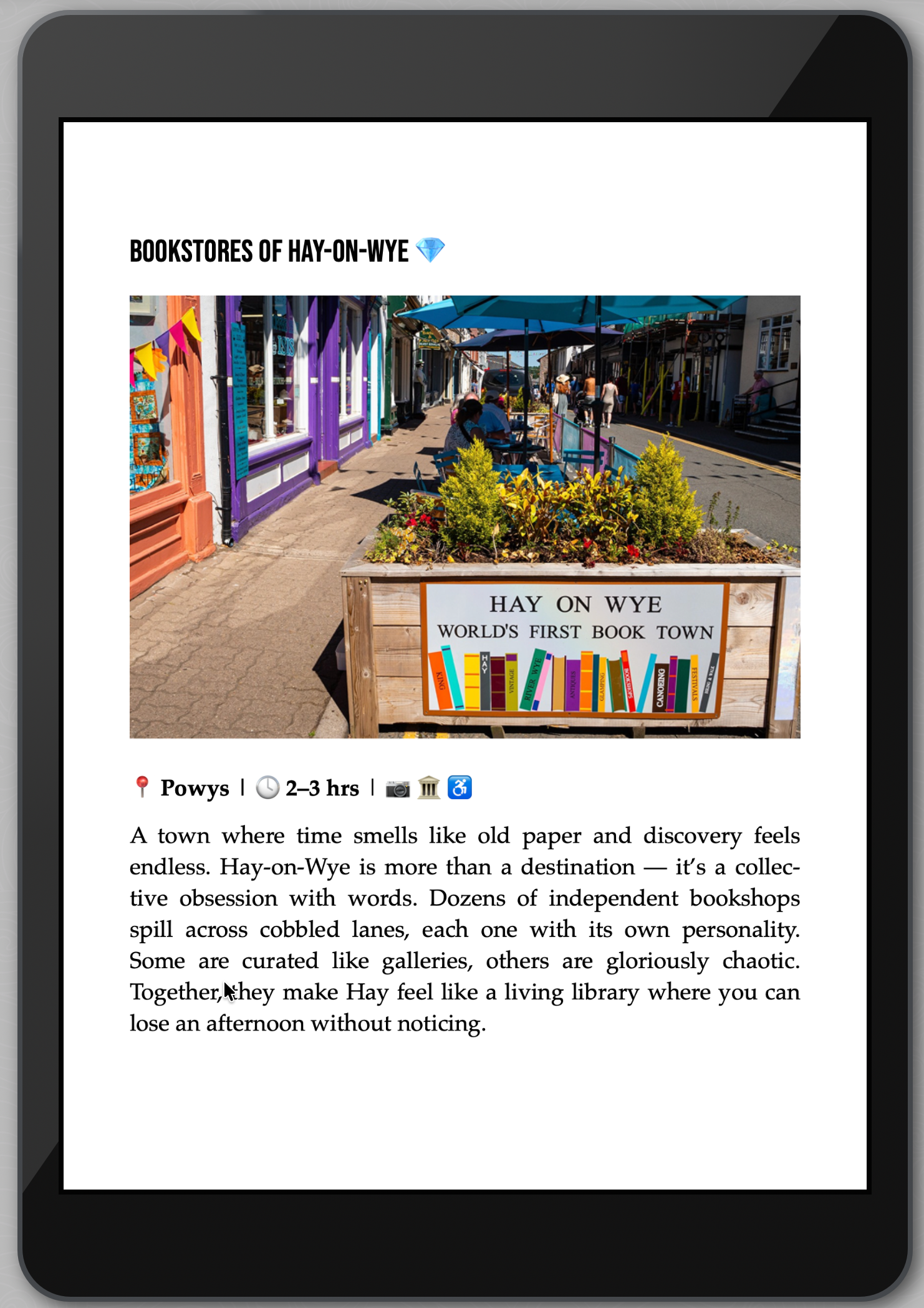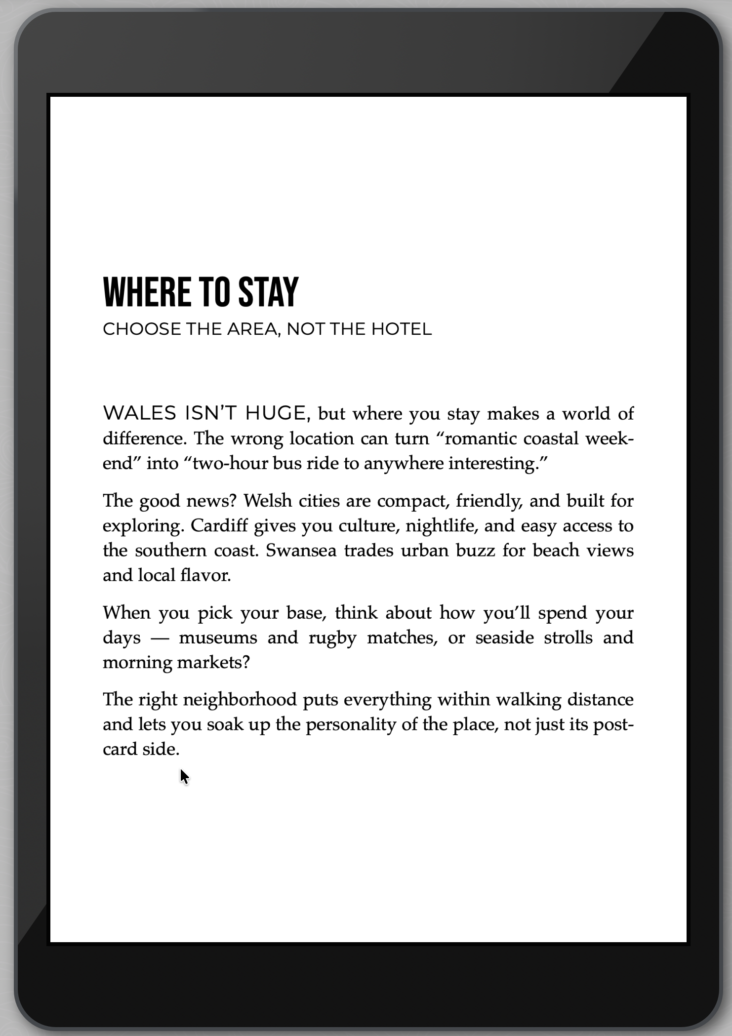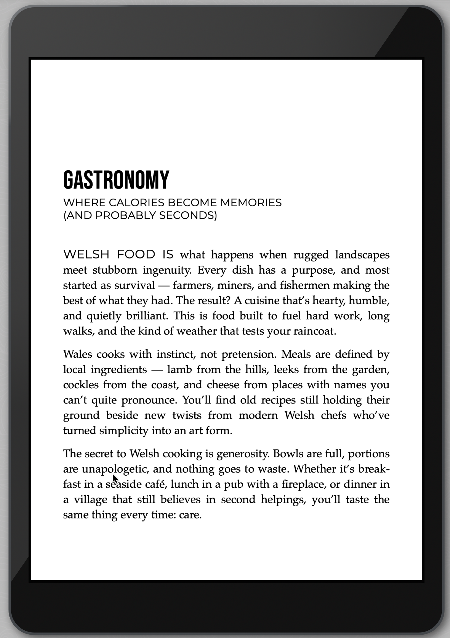 This isn’t a wall of text or an overwhelming travel book. It’s a modern, curated, digital guide built to help you explore Wales with confidence — without endless research.