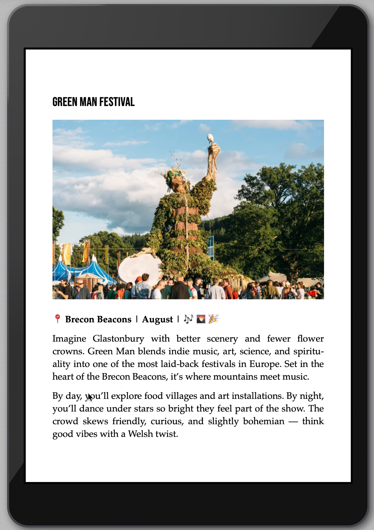 No more decision fatigue. You’ll get our top recommendations for places to visit, events to attend, adventures to experience, souvenirs to buy, and even things kids will love — all carefully selected to deliver the best of Wales without the fluff.