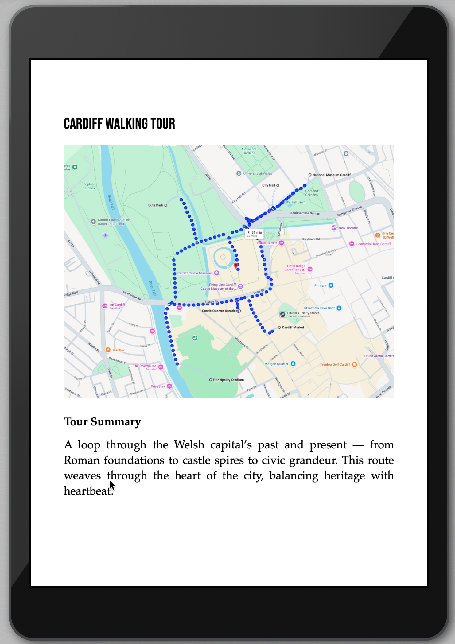 Self-guided walking tours are included for Cardiff and Swansea — complete with points of interest and local insights, so you can explore with confidence, without joining a group.